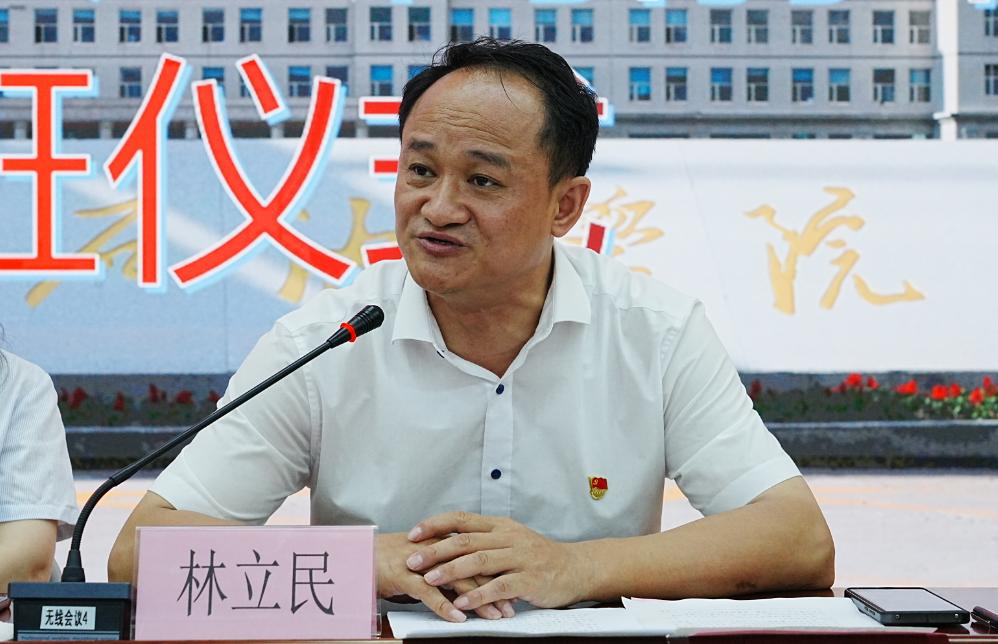 随后,党委书记林立民致辞。林书记对新教工的加入表示欢迎,并对我校的办学历程与办学精神进行了简要的介绍。他指出“器大者声必闳,志大者意必远”、“居位凭潜力,取酬凭业绩”,机遇总是偏向于踏踏实实的工作者,希望新教工能从零开始,丢掉速成的幻想,培养踏实的工作态度和一丝不苟的敬业精神,学校会为大家搭建一个没有天花板的舞台。同时学校也始终坚持“事业留人、待遇留人、环境留人”的指导思想,坚持以人为本的理念,努力改变学校环境、岗位环境、人际环境与学校外部环境,不断提高教师薪资与各项福利待遇,实现学校与员工的双赢发展战略。