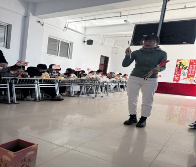 随后的互动环节“制作花灯”和“玉兔投壶”更是让现场热闹非凡。同学们在老师的指导下,手持彩纸、竹篾,精心剪裁、粘贴、装饰,一盏盏造型各异的花灯逐渐成型。当灯光亮起,映照出同学们灿烂的笑容。“玉兔投壶”活动前,同学们排起了长队,大家凝神聚力、瞄准投掷,箭矢入壶的清脆声响和欢呼声此起彼伏。在趣味互动中,传统民俗得以传承,师生间的距离也更加拉近。