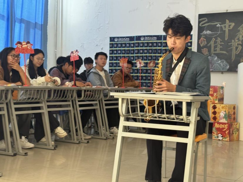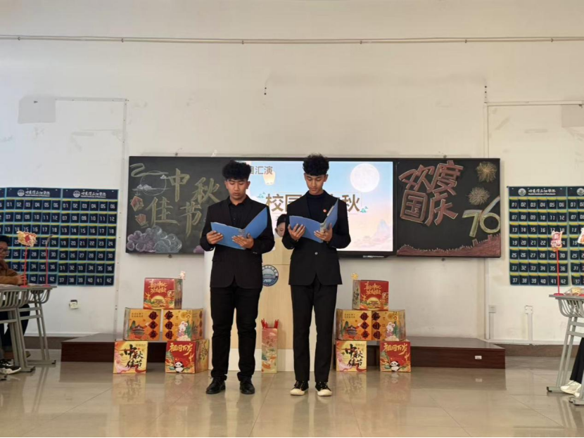 文艺表演环节,同学们用才华与热情点亮了整个舞台。巴布尔江和加拉力丁同学带来朗诵《校园的中秋》,他们富有感染力的语调描绘出校园中秋的温馨与美好,真挚的情感引发了全场共鸣。努尔曼古丽·买买提同学带来的维吾尔族舞蹈韵味十足,舒展的舞姿和独特的民族韵律,展现了多民族文化交融的和谐之美,让师生们领略到民族艺术的独特魅力。赵泓博同学用萨克斯深情演绎《我和我的祖国》,醇厚的音色与激昂的旋律完美融合,将对祖国的热爱之情传递到每一个人的心中,把现场气氛推向了高潮。