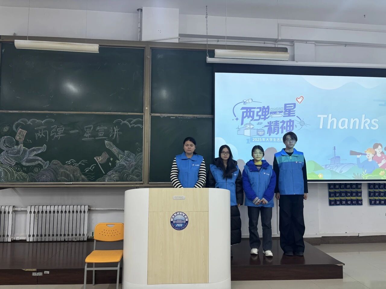 为深切缅怀老一辈科技工作者的丰功伟绩,引导广大青年学子传承红色基因、汲取奋进力量,2025年10月26日,由共青团哈尔滨石油学院石油与化学工程学院总支部委员会主办,石油与化学工程学院青年志愿者协会承办的“致敬两弹一星精神,传承强国使命担当”主题宣讲活动在第一教学楼101教室隆重举行。