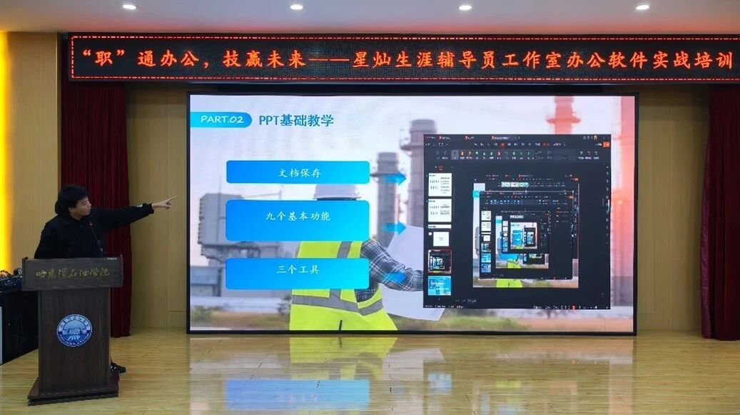 为聚焦学生职场核心技能提升,筑牢职业发展基础,2025年11月14日,星灿生涯辅导员工作室成功开展“职”通办公,技赢未来办公软件实战培训。工作室全体老师与150余名学生齐聚一堂,共同解锁数字化办公实用技能。