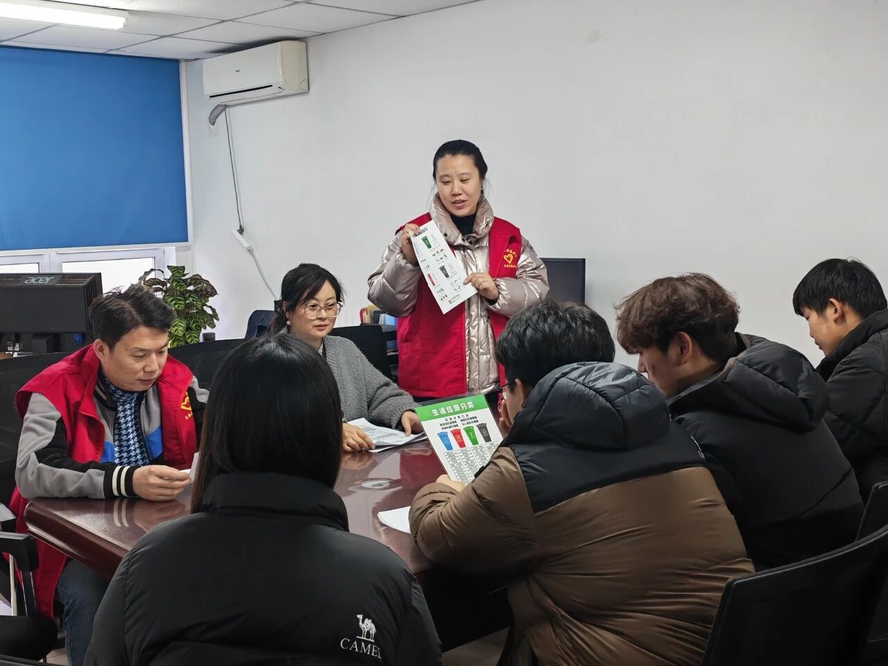 活动现场,志愿者们分为两组同步开展服务。垃圾分类小组通过设置展板、发放宣传册和开展模拟投放游戏等形式,向居民生动讲解垃圾分类知识。志愿者们耐心解答居民提出的"废旧电池如何处理""外卖餐盒是否可回收"等生活常见问题,让环保理念在轻松互动中深入人心。