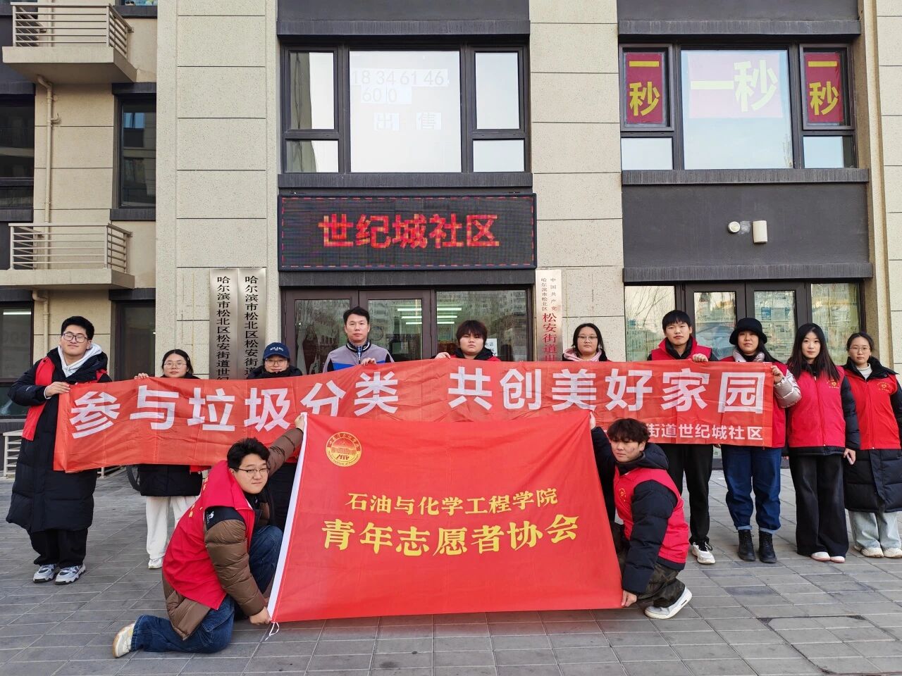 为践行青年社会责任,助力生态文明与社区建设,提升社区居民的环保意识与防诈骗能力,2025年11月25日,哈尔滨石油学院石油与化学工程学院青年志愿者协会的十余名学生志愿者,前往世纪城社区,成功开展了“垃圾分类践于行,反诈宣传护于心”主题志愿服务活动。