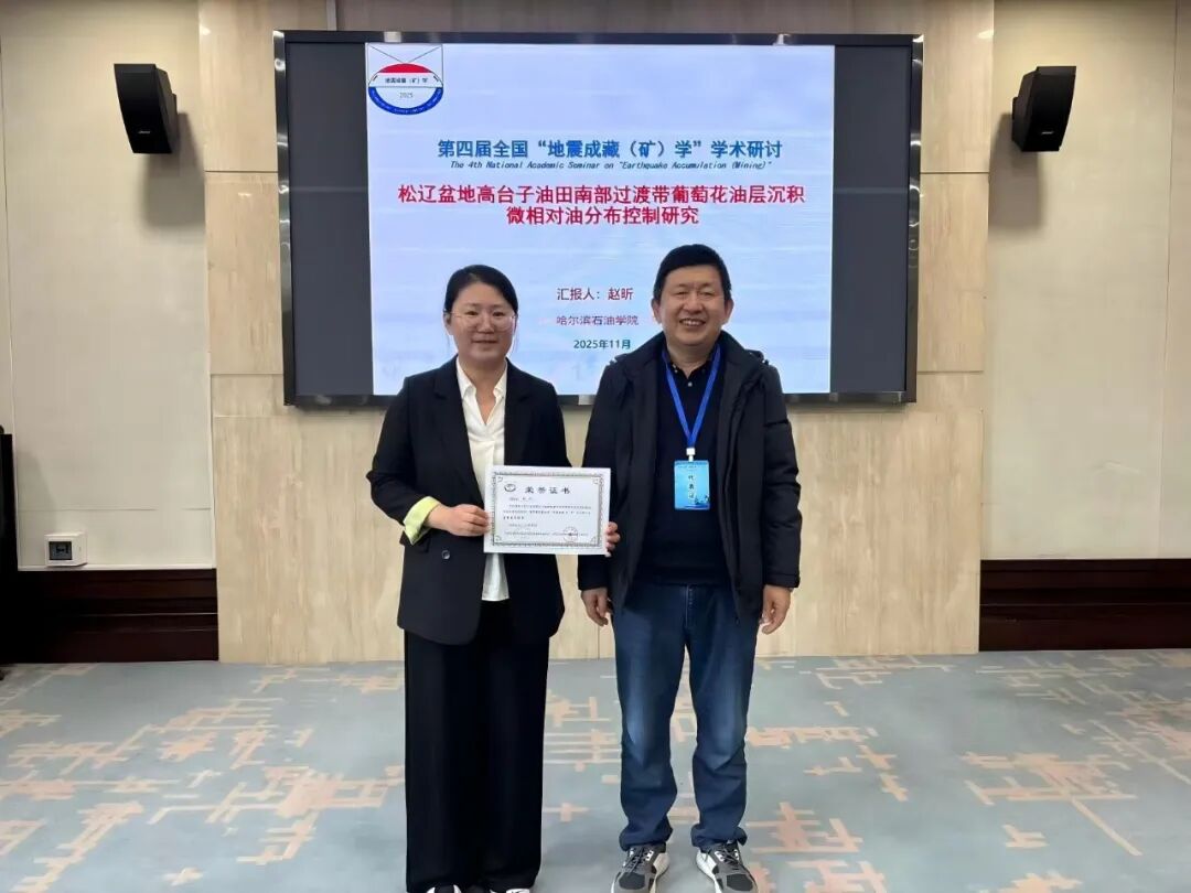 赵昕老师在大会上作了题为《松辽盆地高台子油田南部过渡带葡萄花油层沉积微相对油分布控制研究》的专题报告。该报告聚焦国家重要能源基地——松辽盆地,针对老油田高含水阶段面临的储层预测与产能接替难题,系统运用高分辨率层序地层学与地震沉积学方法,深入开展了沉积微相精细刻画及其对油水分布控制作用的研究。该项研究为“地震成藏学”在老油田的实践提供了有力佐证,获得了与会专家的充分肯定。