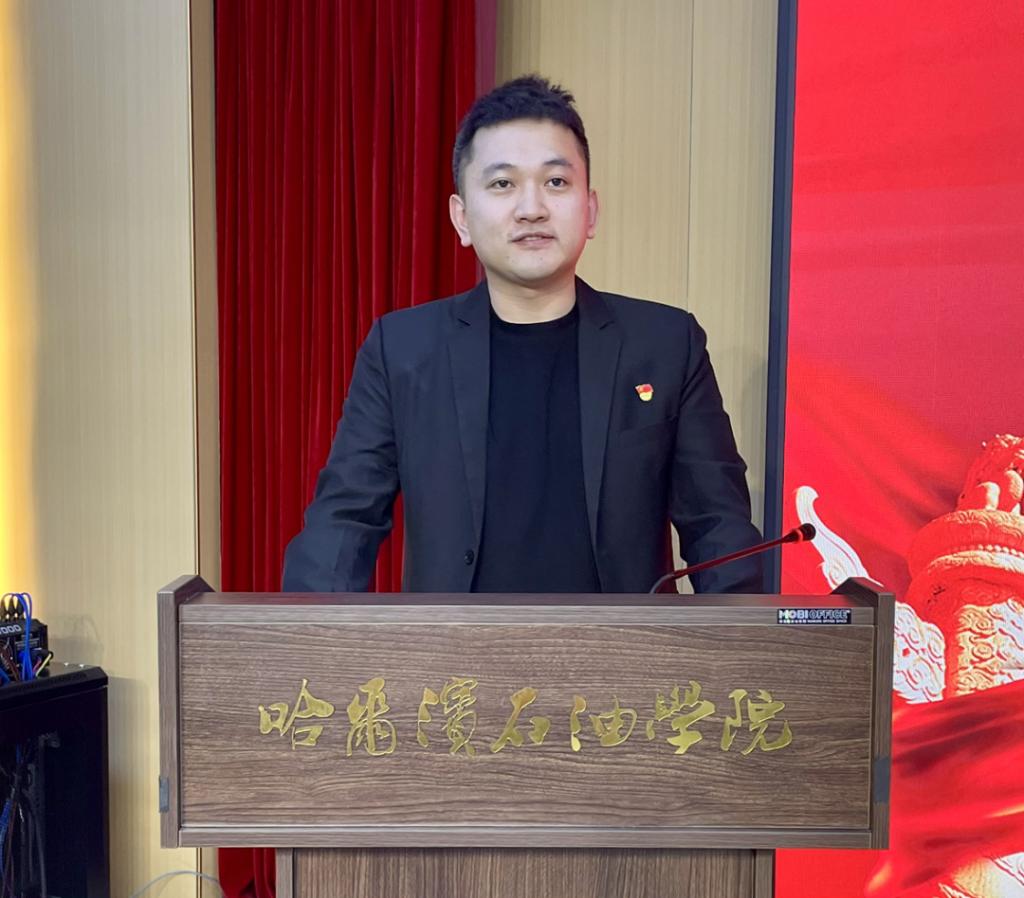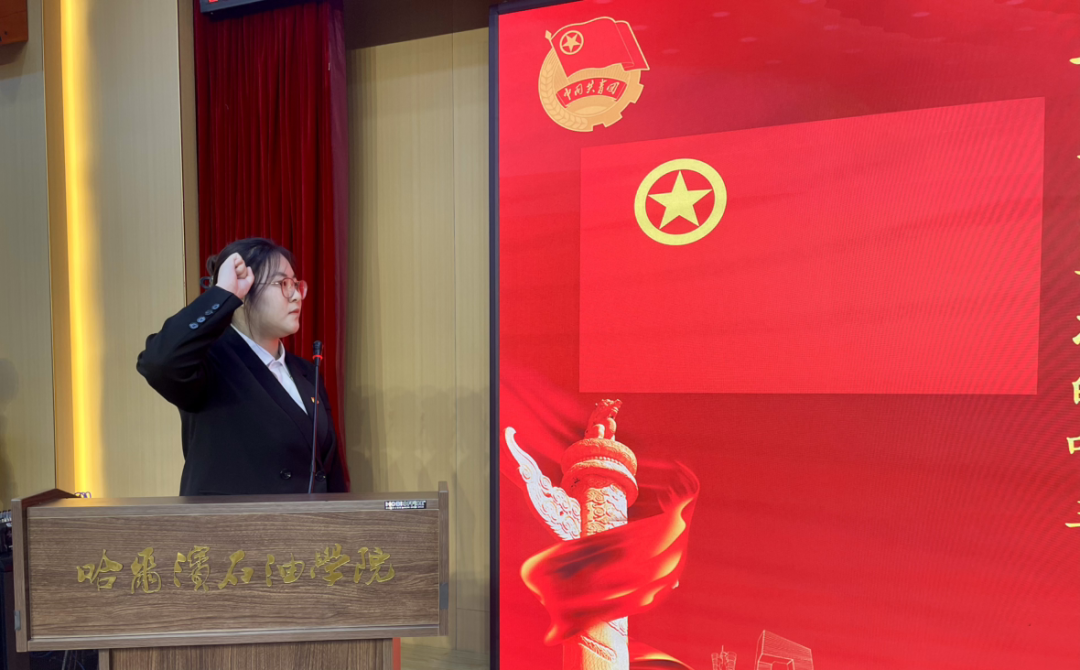 加强共青团组织建设,引导青年学生坚定理想信念,2025年12月12日,哈尔滨石油学院以“青春聚能行,团旗引航程”为主题,举行2025年下半年新团员入团仪式。团总支书记冯海龙出席本次仪式。