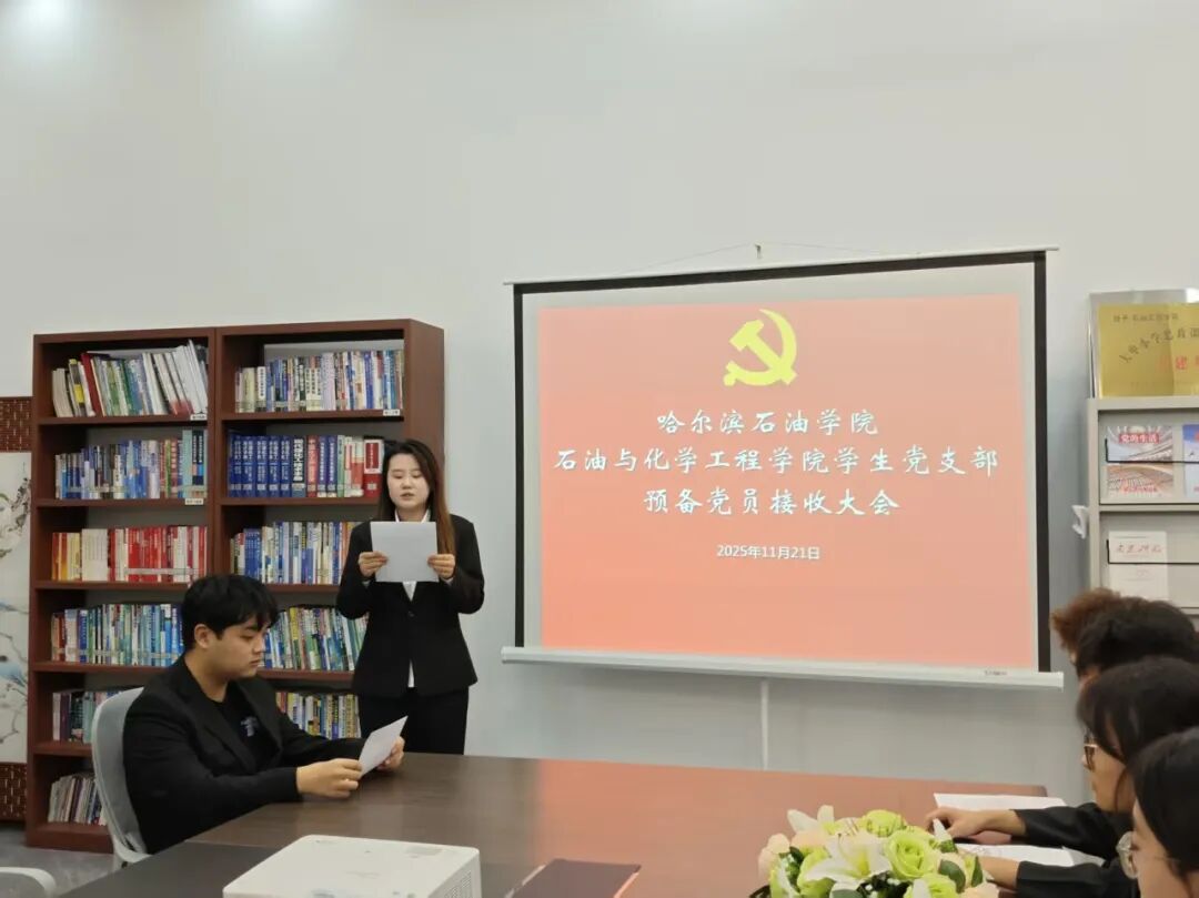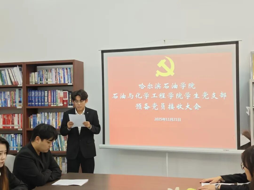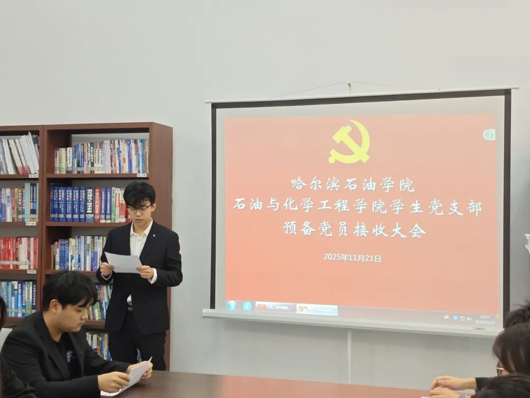 为扎实推进学生党员队伍建设,充分发挥党建引领核心作用,持续提升党组织凝聚力与战斗力。2025年11月21日,石油与化学工程学院学生党支部在第一教学楼811党员之家召开了预备党员接收大会,会议由党支部书记主持。