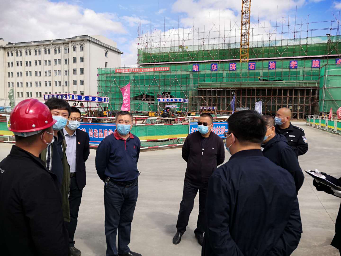 党委书记焦光纯还嘱托各工地、各部门工作人员要做好自身防护的同时,提高对疫情防控工作的认识,严把校园封闭关,严格执行“戴口罩、扫描健康码、测量体温、出入登记”的入校流程,为全体师生员工营造一个安全、稳定、和谐的工作和学习环境。