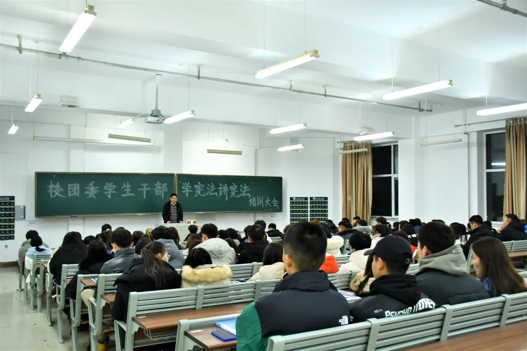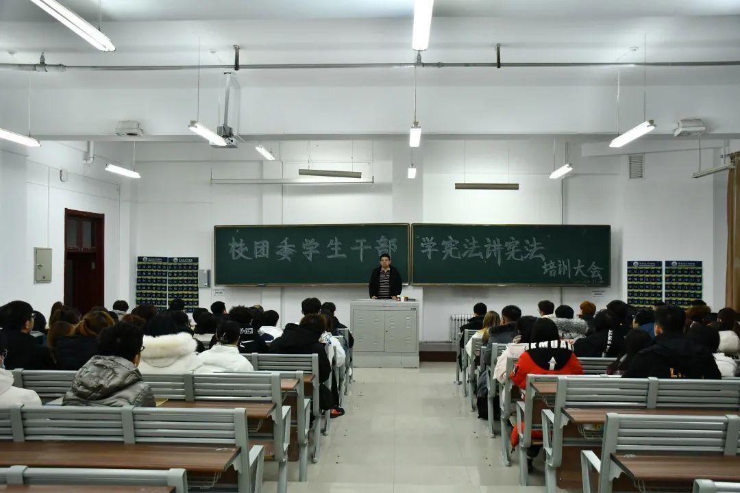 为深入学习习总书记全面依法治国新理念新思想新战略,更好地贯彻落实习总书记关于宪法学习宣传教育的系列重要指示精神。响应上级《关于开展2020年全省教育系统“宪法宣传周”系列活动的通知》要求,我校团委于2020年11月30日下午19:00在主教204组织学生干部开展“校团委学生干部学宪法讲宪法培训大会”学习会议,校团委所有教师及全体学生干部参与了本次活动,会议由校团委副书记彭雷主持。