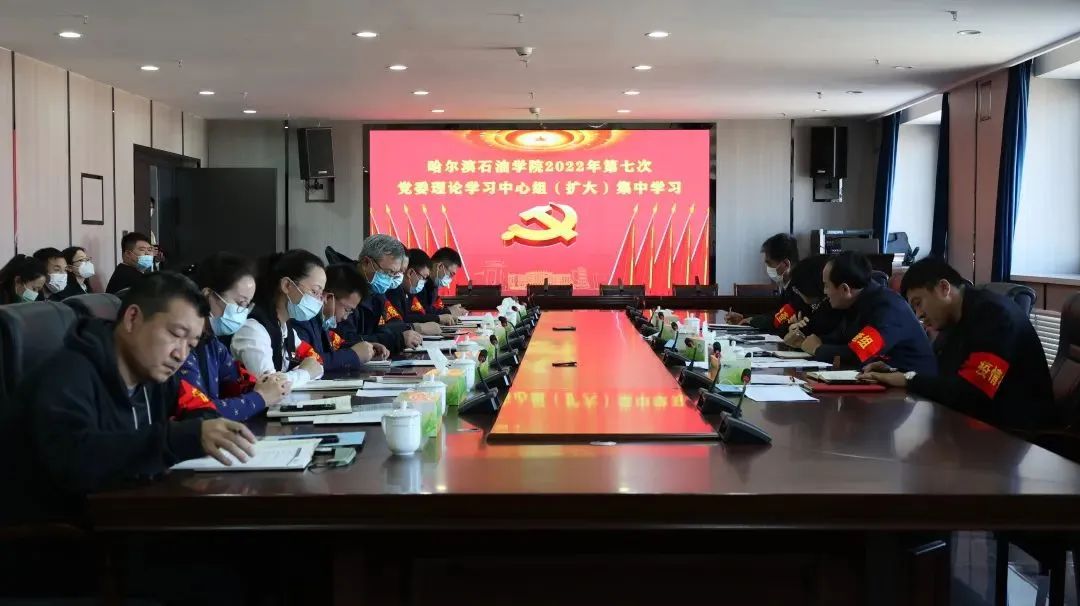 11月8日,哈尔滨石油学院在综合楼1515会议室召开校党委理论学习中心组(扩大)专题学习,学习党的二十大精神。全体校领导、党委委员、各党总支书记参加会议,会议由党委书记林立民主持。