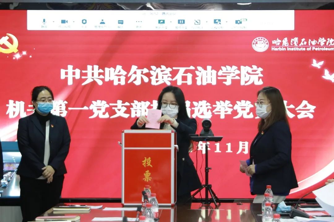 与会人员审议通过党支部工作报告、讨论通过大会选举办法(草案)、通过选举投票确定新一届机关第一党支部支部委员。