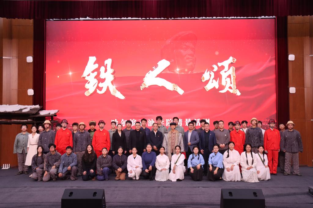 2025年11月11日,我校情景话剧《铁人颂》2025年校内第三场演出在图书馆报告厅圆满落下帷幕。我校校领导以及大庆师范学院陈立勇教授莅临现场观看演出,与辅导员及学生代表一同沉浸在这场跨越时空的精神对话中。现场气氛热烈,掌声不断,一幅镌刻着民族脊梁的壮丽画卷深深印刻在每位观众的心中。