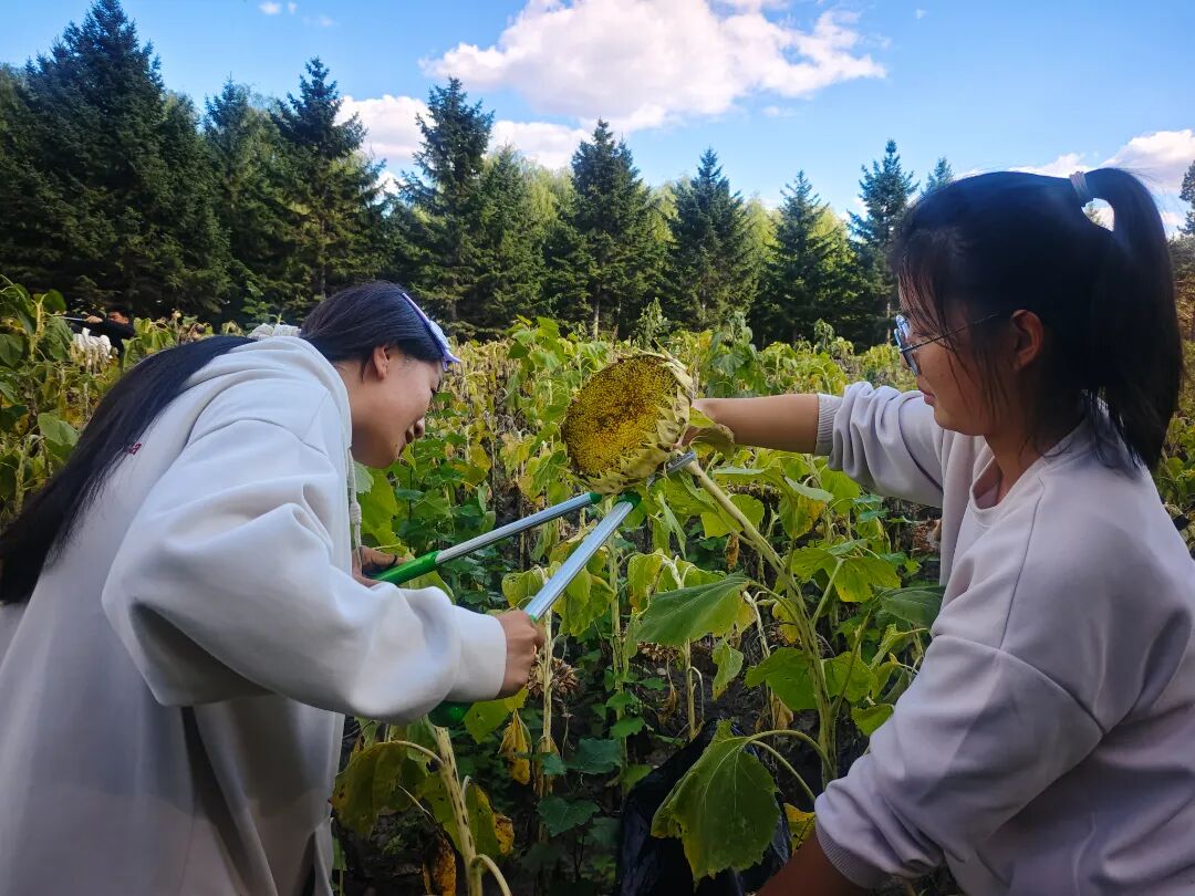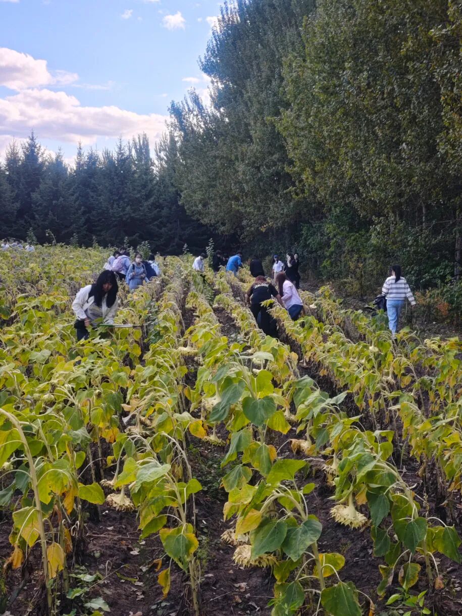 收割现场,同学们化身“田间小能手”,亲手触摸自己劳动的果实,小心翼翼地收割下饱满成熟的向日葵。