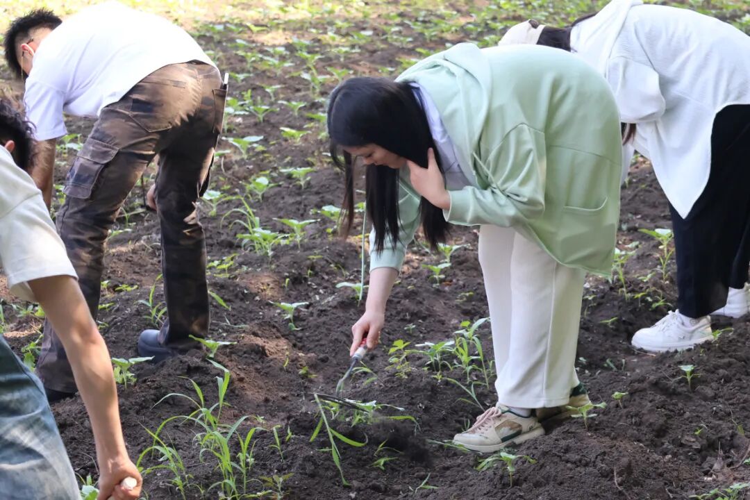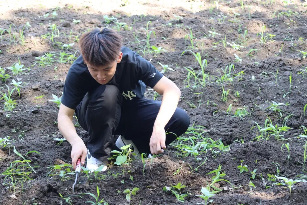 盛夏六月,“勤禾育园”迎来首次除草育苗活动。6月17日,学生们以学院为单位分组协作,弓着腰一寸寸清除杂草,小心为日渐茁壮的幼苗培土。