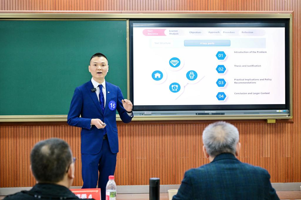 组委会组织了严谨专业的评审团队,由来自全国多所高校的25位资深专家担任评委。决赛赛制设计注重考察教师的教学基本功和临场应变能力。本科大学英语组选手需在检录后进入准备室,现场抽取教学素材,在1.5小时内完成课程思政教学设计,随后进行教学设计阐述与问答两个环节的严格考核。