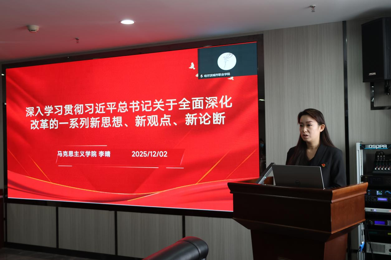 马克思主义学院教师李晴作题为《深入学习领会习近平总书记关于全面深化改革的一系列新思想 新观点 新论断》专题辅导
