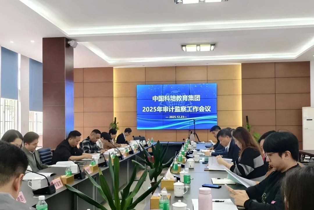 12月23日中国科培教育集团召开2025年度审计监察工作视频会议,全面总结集团及旗下院校2025年的审计监察工作成果,系统谋划2026年重点工作。集团监事长叶念厩出席会议,集团审计监察全体成员,集团有关部门负责人在主会场参加会议,我校纪委书记、审计监察室主任宁晶,副主任李洪华,学校审计监察室全体成员在学校分会场参加会议。会议由集团审计监察部主持。