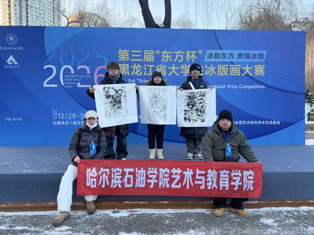 在第三届“东方杯”黑龙江省大学生冰版画大赛中,李莹老师的个人作品获得教师组三等奖,其指导的学生张凯获得学生组优秀奖。