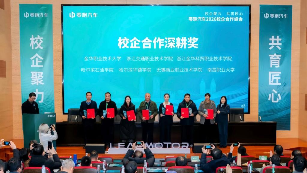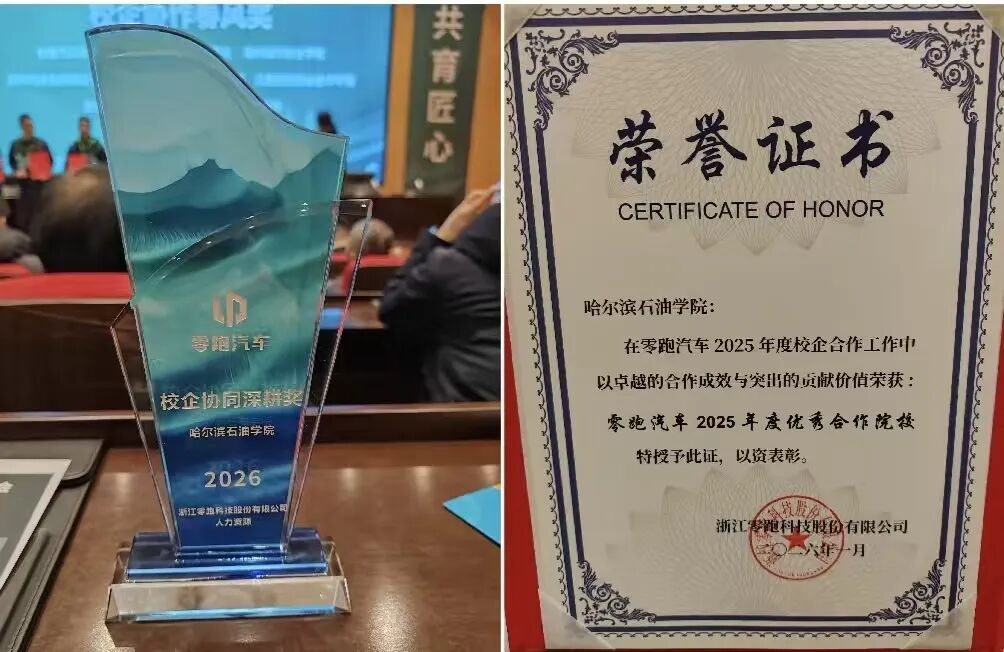 1月7日,以“校企聚力,共育匠心”为主题的零跑汽车2026校企合作峰会暨新能源及智能网联汽车产教融合共同体成立大会圆满召开。我校凭借在智能领域人才培养的创新实践与扎实成效,荣膺“零跑汽车2025年度优秀合作院校”及“校企协同深耕奖”两项重磅殊荣,成为峰会上备受关注的龙江高校代表之一。