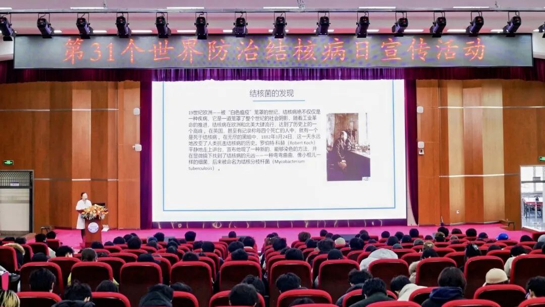 大学生艺术团李硕露、贾怡涵带来的改编歌曲《奔跑》,校学生会付佳祺、刘雨含等表演《预防肺结核手势舞》,用青春旋律传递健康力量;哈尔滨市胸科医院副主任医师阮文秋作结核病防治科普讲座,结合大学生群体特点,深入讲解传播途径、常见症状及治疗原则,强调宿舍通风、增强免疫力等校园预防要点;松北区疾控中心传控与应急科副科长林千山组织的有奖问答,激发学生参与热情
