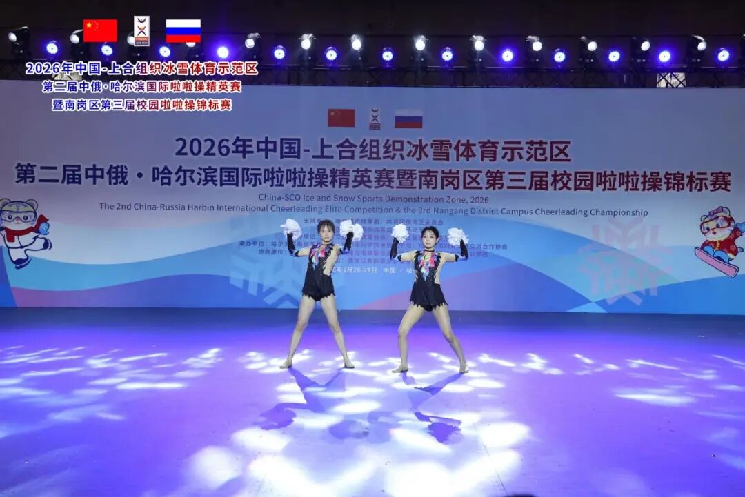 3月28-29日,2026年中国-上合组织冰雪体育示范区第二届中俄·哈尔滨国际啦啦操精英赛暨南岗区第三届校园啦啦操锦标赛在哈尔滨市人民体育馆圆满落幕。