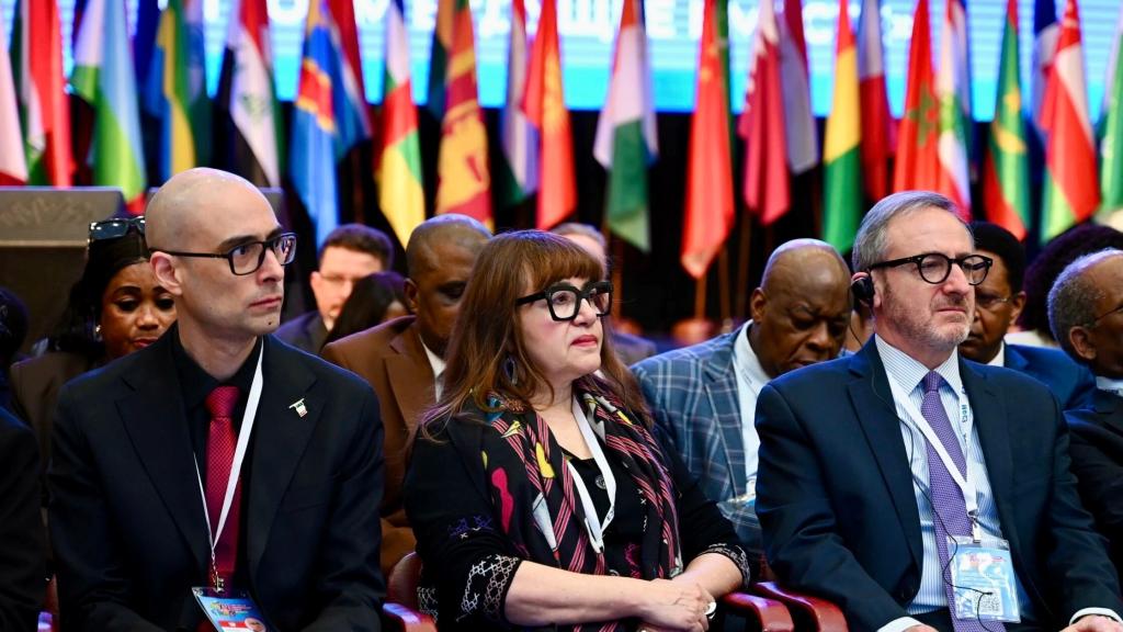 我校代表团全程参与论坛开幕式、高端全体会议及系列文化交流活动,与多国驻俄使节、国际组织代表及青年领袖进行了富有成效的对话。
