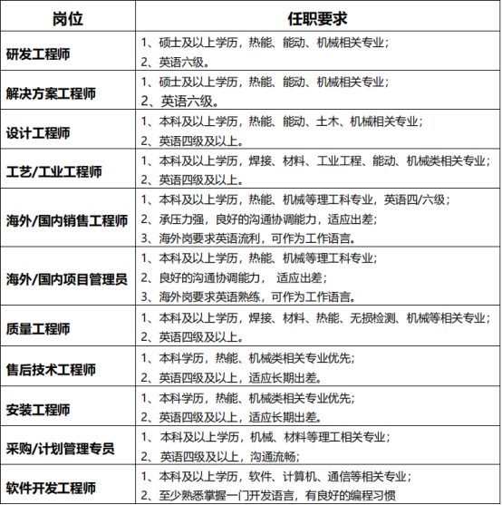 简历投递邮箱:job@chinaboilers.com邮件主题:“学校+专业+应聘岗位”