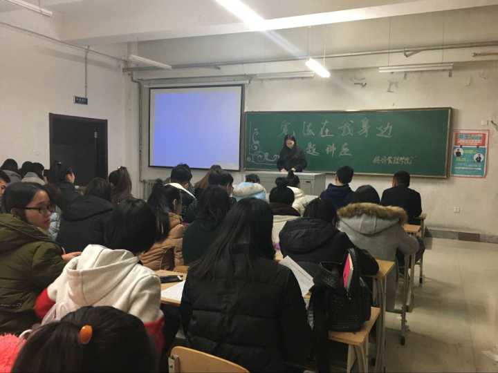 2014和2015级学生以寝室为单位组织开展“宪法课堂进生活”,学生们在寝室观看了法制宣传视频,在寝室内开展大讨论。2016级学生开展以“观宪法悟心得”为主题的征文活动,同时利用晚自习时间观看普法纪录片视频,组织法制讲座,调动学生参与“讲宪法”活动的积极性。各年级以辩论赛的形式开展宪法宣传教育活动,法律辩论赛将课堂与社会融为一体,理论与实践密切联系,激发了学生的学习热情。