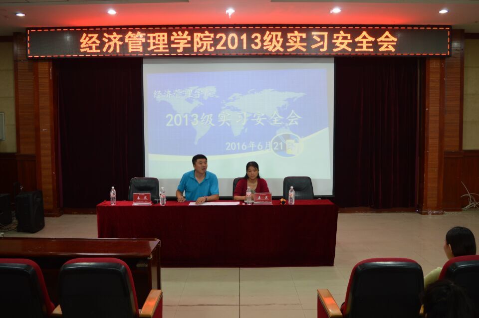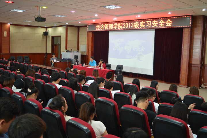 6月21日上午,经济管理学院在科技报告厅举办“2013级学生外出实训实习动员暨安全教育专题会 ”。 校长助理、经济管理学院院长冯研、学院副院长任红云、副院长刘威娜出席会议,2013级全体师生共300人参会。
