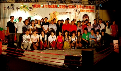 6月23日晚,经济管理系携手康师傅集团欢送毕业生大型文艺歌舞晚会暨第七届大学生科技文化艺术节颁奖盛典在阳光大厅举行。出席本次晚会的嘉宾有院党委领导以及各系导员等。院党委副书记张仲孚教授在晚会上致闭幕辞。