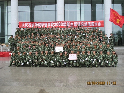 2008年9月10日,华瑞学院的操场上英姿飒爽,激情飞扬。来自九个系的08级新生身穿迷彩服,英气勃发,正准备新生军训会操表演。我系近三百名新生昂首挺胸、蓄势待发!经过近十分钟的表演,我系以出色的发挥分别获得“军训内务先进集体”“军训队列先进集体”,其中我系15名新生获得“优秀个人”荣誉称号。