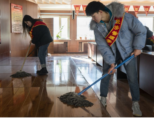 社区书记韩志荣对各位志愿者们的到来表示了欢迎,首先志愿者们对滨才社区的住户进行了关于供暖情况的问卷调查,并送上了精美的纪念品。随后志愿者对社区的活动中心进行打扫,并与在活动中心锻炼身体的老人聊天,关心老人们的生活、出行、身体等方面的情况,将老人们反应出的一些问题及时反馈给滨才社区的工作人员。