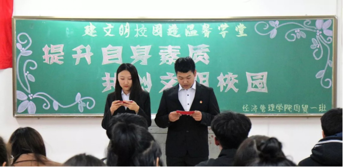 党政班子成员及辅导员齐抓共管,对学生的上课迟到、旷课、早退等现象,学院特制定《经济管理学院关于学生旷课、替课等行为的处理办法》。对学生的寝室卫生、夜不归寝等情况进行每日一查,并与学生签署《寝室文明公约》,强化了学生的纪律意识。辅导员通过召开班会、座谈会、一对一谈话等方式,帮助学生树立正确的世界观、人生观、价值观,确立爱党爱国思想,确定共同理想和奋斗目标,坚定信念脚踏实地实现梦想。积极引导学生不断追求更高的目标,使他们中的先进分子树立共产主义的远大理想,确立马克思主义的坚定信念。