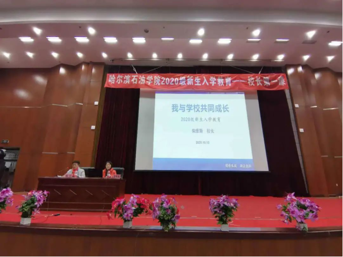会议伊始,校长代表学院全体师生向2020级新生表示热烈的欢迎,并围绕“不平凡的2020年”、“普通高等学校本科教学工作合格评估”、“为什么上大学”以及“如何使大学时光更加美好”四个方面展开报告,向同学们介绍了学校的办学历史和成绩以及学校即将迎来教学评估工作的筹备情况,她表示学校即将接受教育部本科教学工作合格评估。相信同学们听后能积极参与到评估工作中,共同建设哈油的美好明天。