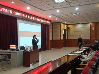 为了深入了解数字经济背景下当今社会的商业模式,让同学们明确自身专业未来发展方向,经济管理学院于11月6日在第一教学楼518会议室召开了由哈尔滨商业大学商务学院市场营销系主任易加斌教授带来主题为《“数字经济”驱动的组织变革与营销创新》的第九期“E&M博学讲坛”专题讲座。本次讲座由陈旭老师主持,经济管理学院任洪云院长及我院师生代表参加。