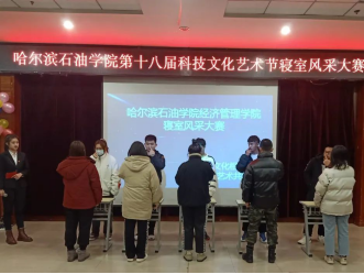 为了响应我校第十八届科技文化艺术节的开展,加强我校大学生的寝室文明建设,营造良好的寝室文化与和谐的寝室氛围,丰富校园文化活动,哈尔滨石油学院第十八届科技文化艺术节寝室风采大赛于11月23日下午17:30在第一教学楼518会议室成功举办。经济管理学院积极组织同学们参与本次大赛,并在比赛中摘得第一名的桂冠。