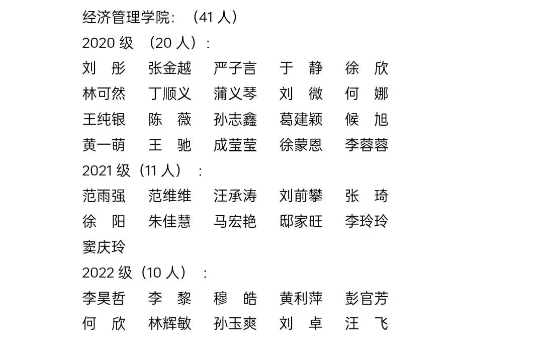 经济管理学院2022-2023学年度国家励志奖学金推荐名单公示如下: