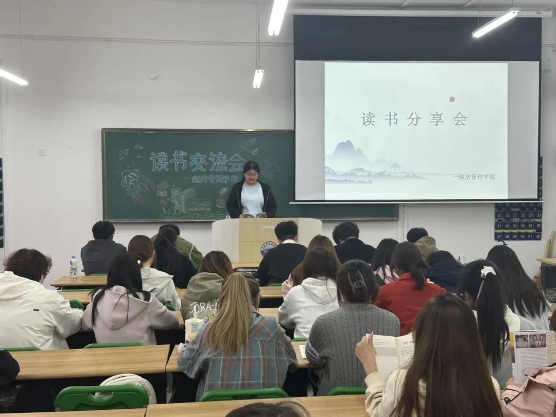 活动伊始,由主持人发表致辞,强调了阅读对于经管类专业学生在拓宽视野、增强思维能力以及提升综合素养方面的重要性,鼓励同学们多读书、读好书,从书籍中汲取智慧和力量。在分享环节,同学们热情高涨,不少同学分享的书籍正是源自老师的日常推荐。有同学分享了人文社科类书籍的阅读体验,畅谈书中观点对个人价值观和思维方式的影响,引导大家在忙碌的专业学习之余,注重人文素养的提升;还有同学分享了与经管专业相关的书籍,结合专业知识和实践案例,深入剖析书中的理论和方法,展现出对专业知识的深入理解和思考。同学们的分享内容丰富、角度多元,或旁征博引,或结合亲身经历,生动诠释着阅读带来的成长。这充分体现出大家认真响应了老师的书籍推荐,在阅读中收获颇丰。