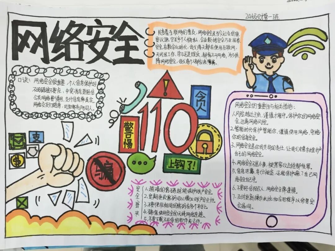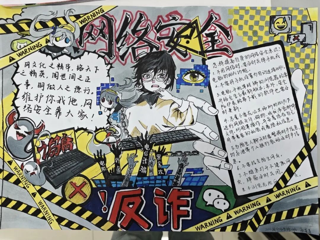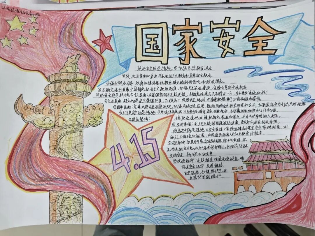 活动自2025年4月14日启动以来,各年级学生踊跃参与。同学们通过查阅资料、交流讨论,深入了解国家安全的丰富内涵,围绕政治安全、网络安全、反间谍安全、校园安全为主题来创作。在创作过程中,大家充分发挥创意,运用手中的画笔,将对国家安全的理解以图文并茂的形式呈现在手抄报上。