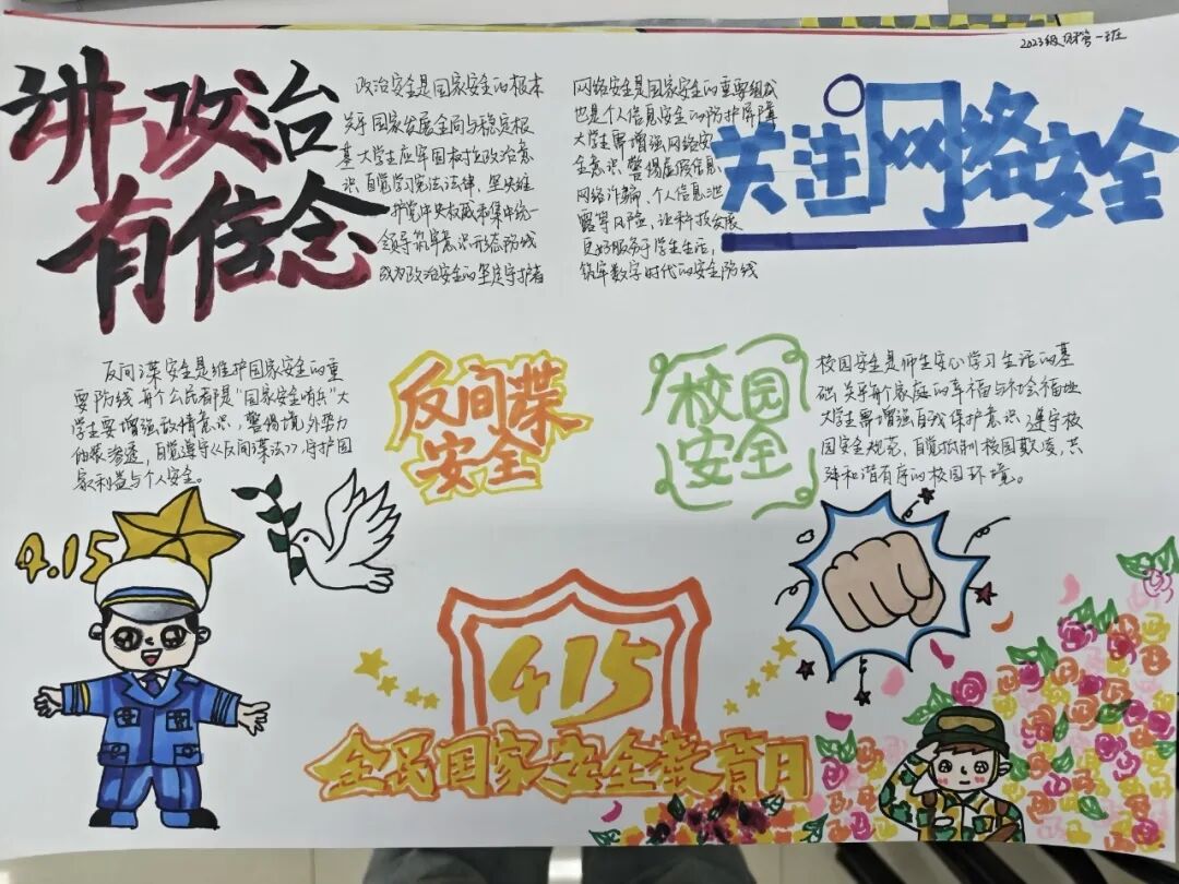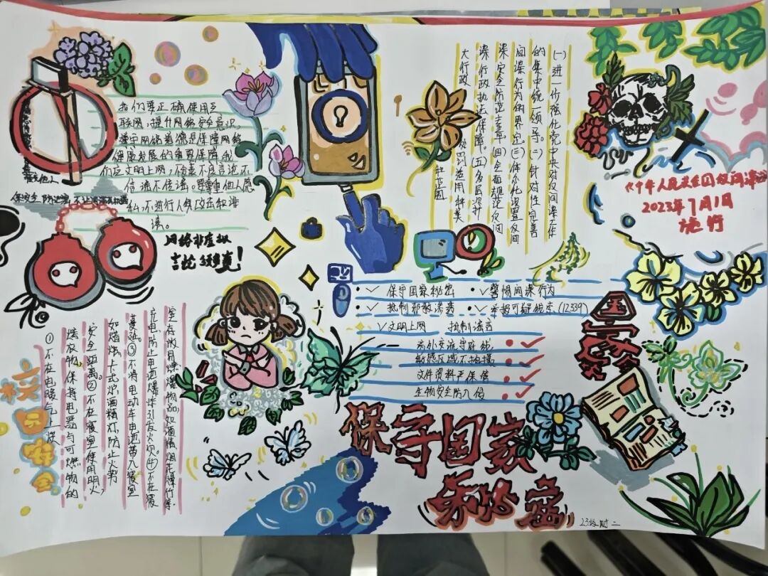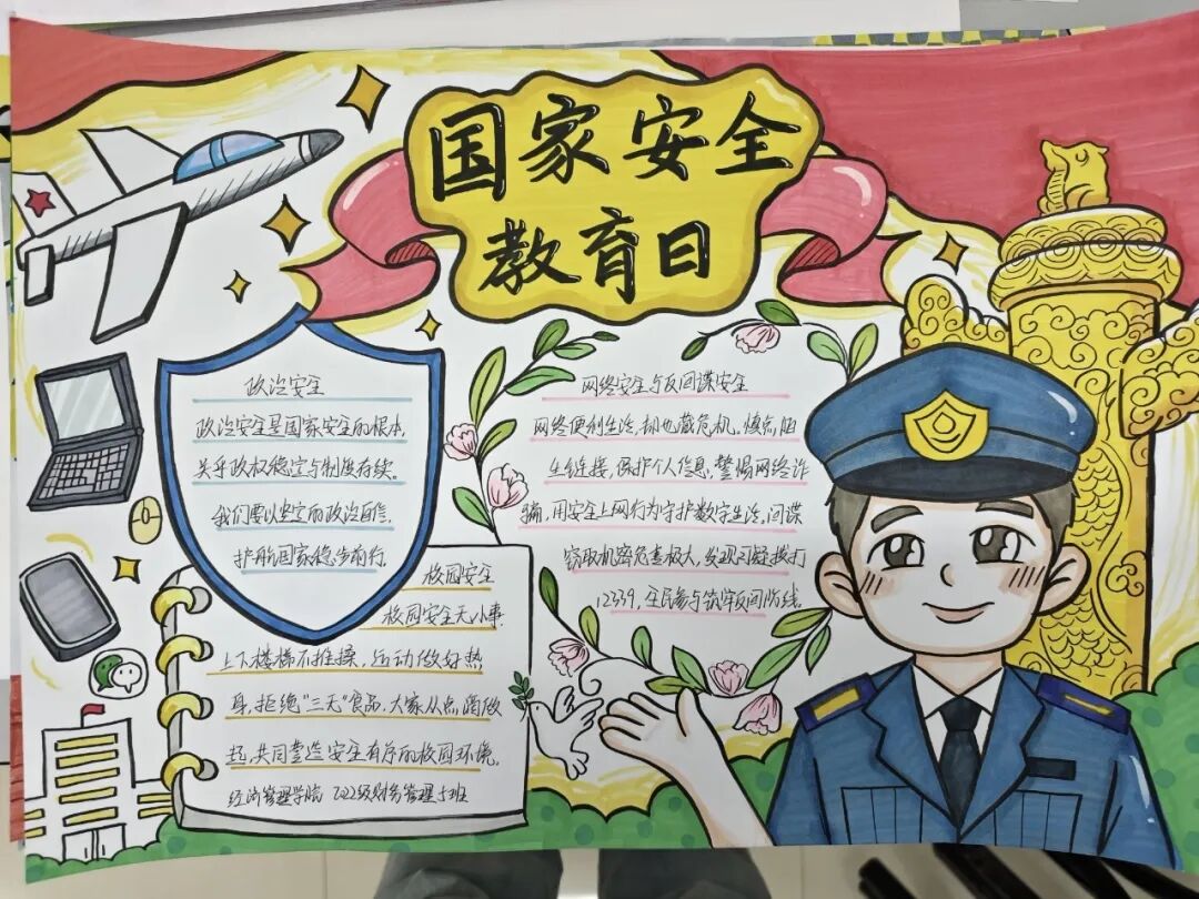 通过国家安全教育手抄报活动,不仅提升了学生的艺术创作能力,更让国家安全观念深入人心,引导广大学生自觉成为国家安全的守护者。未来,学院将继续开展形式多样的国家安全教育活动,为筑牢国家安全防线贡献力量。