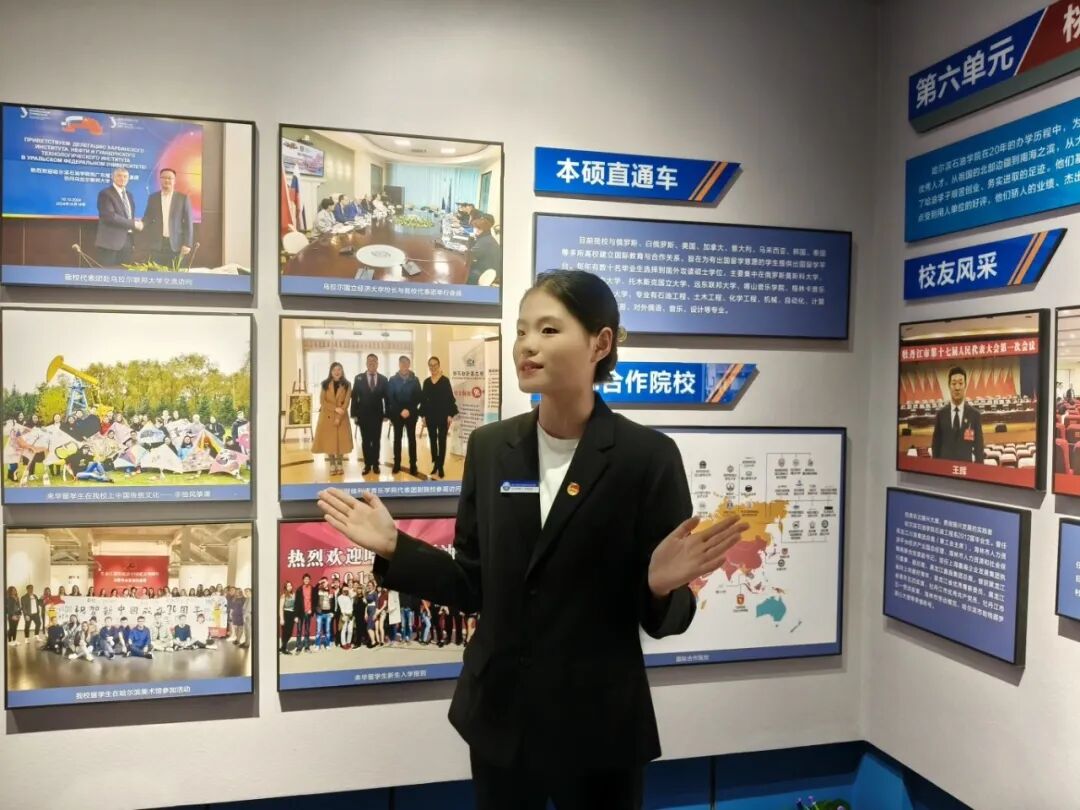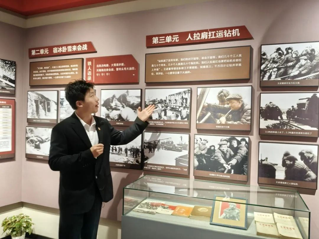 参观过程中,校史馆内“铁人精神与办学实践”展区成为全体新生关注的焦点。展区内陈列的铁人王进喜同志相关文献资料、学校依托石油行业背景践行铁人精神的办学纪实、师生在志愿服务、社会实践中传承铁人作风的影像记录,在讲解员的细致解读下,让新生们直观感受到“爱国、创业、求实、奉献”的铁人精神如何与学校发展深度融合。无论是刚刚踏入大学校园的新生,还是经历专升本阶段、开启新阶段学习的学生,都对展区内容展现出浓厚兴趣。当听到学校在培养经管人才时,始终以铁人精神为引领,鼓励学生在能源经济、企业管理等领域秉持“干一行、爱一行、专一行”的态度时,大家纷纷驻足凝视,有的认真记录展区文字,有的主动向讲解员询问学校践行铁人精神的具体案例,现场交流中满是对精神传承的思考与认同,不同学习经历的新生在交流中也碰撞出对“奋斗”与“坚持”的共鸣。