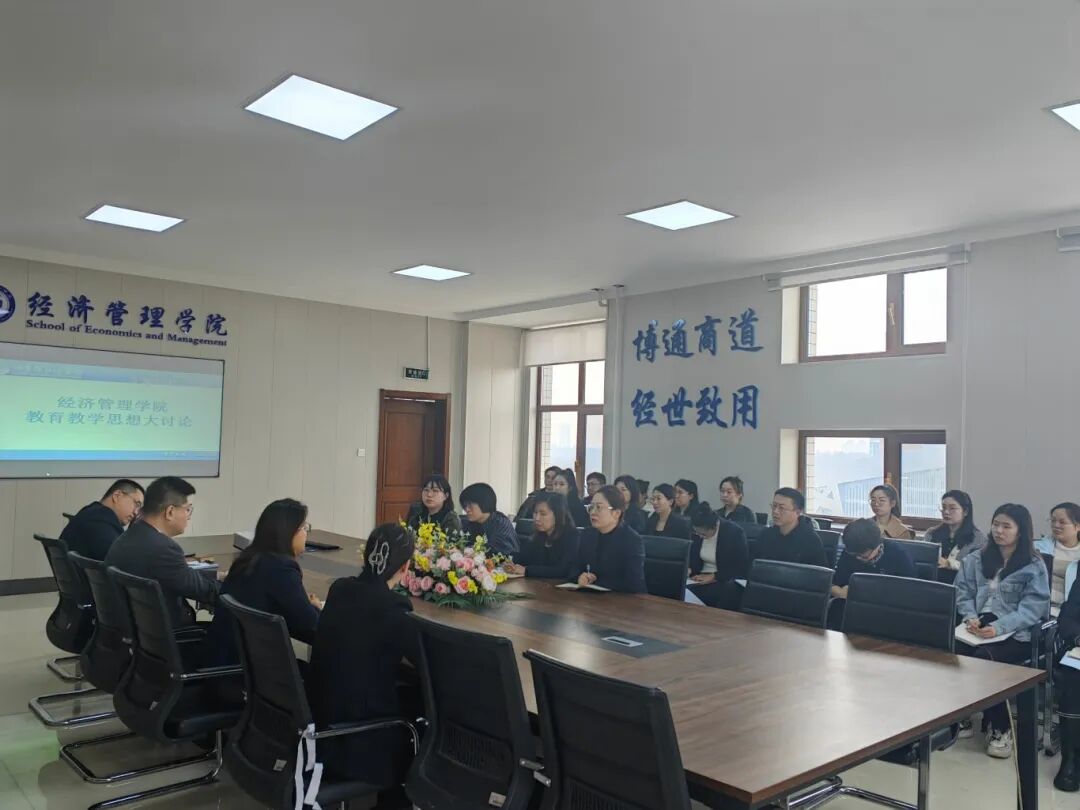 4月11日上午,经济管理学院开展本科教育教学思想大讨论专题研讨会,研讨会由任洪云院长主持,学院全体教职工参加。