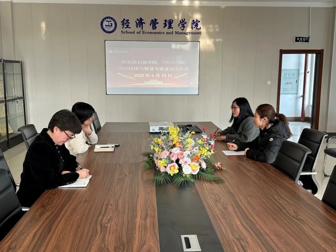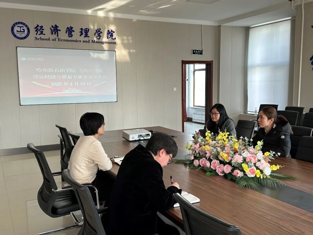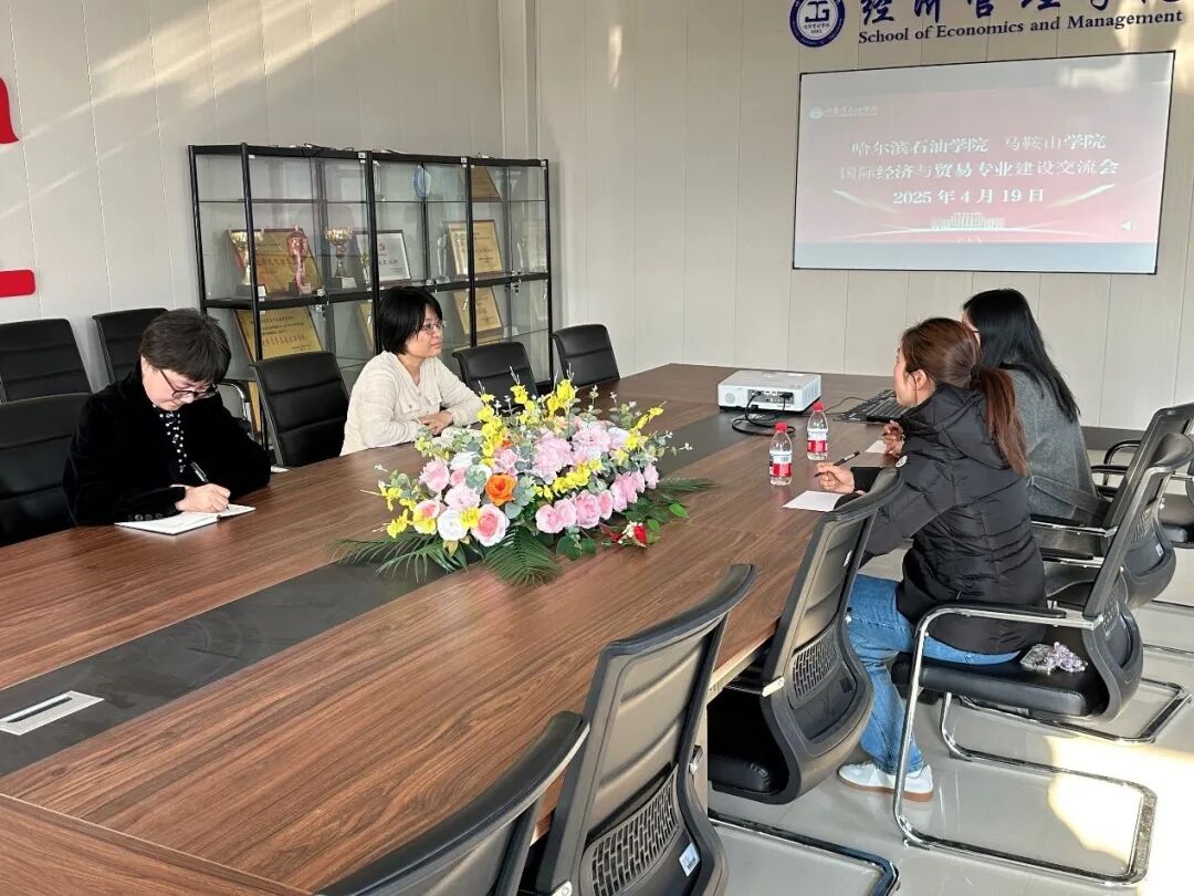 近日,哈尔滨石油学院经济管理学院国际经济与贸易专业教研室主任季克华教授及专任教师张宇教授,与马鞍山学院国际经济与贸易专业主任奚萍子、副主任马晓青开展专业建设与发展交流活动。此次研讨会以“加强专业协同,提升人才培养质量”为主题,围绕当前国际经济与贸易专业的建设现状、教学改革实践、产教融合路径以及未来发展方向等关键议题展开了热烈讨论与经验分享。