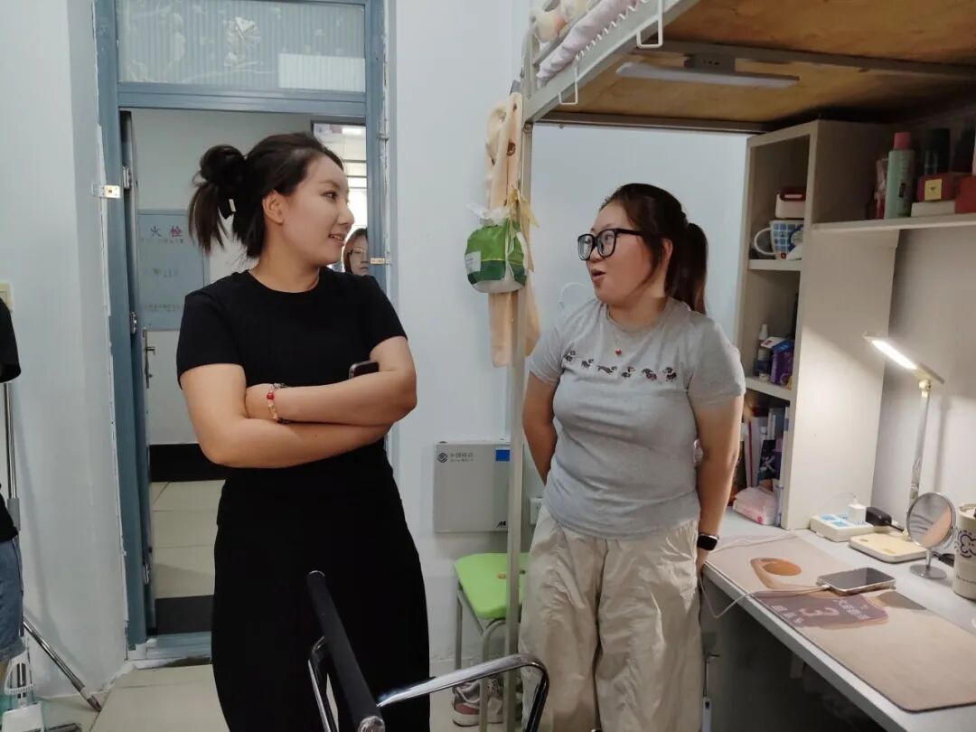 走进新生寝室,慰问小组仔细查看了寝室的住宿环境、设施配备情况,关切地询问大家是否适应新的生活节奏,饮食、作息是否习惯,是否遇到需要学院协助解决的问题。一句句亲切的问候,一个个细致的关怀,瞬间拉近了与新生的距离,让初入校园的同学们感受到了家一般的温暖。