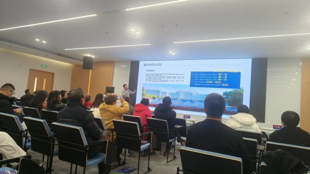 在峰会专题发言环节,郭砚老师代表哈尔滨石油学院,向与会的高考报考咨询机构代表展示了哈尔滨石油学院的整体实力及办学特色,并围绕大数据管理与应用专业的设置背景与就业前景、专业课程体系与师资力量、实践教学条件与学生培养成果等内容进行了详细介绍,全面展示了哈尔滨石油学院在应用型人才培养方面的优势与成果,有效提升了哈尔滨石油学院及大数据管理与应用专业在省内高考报告咨询机构中的知名度与影响力,为后续吸引优质生源、拓展校企合作奠定了良好基础。会后,四位老师与参会的高考报考咨询机构代表进行了深入交流。