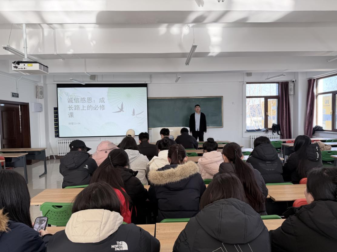 此外,学院还着力推动感恩教育的常态化与生活化。通过主题班会、分享交流会等形式,引导学生回顾成长历程,体会父母养育之恩、师长教诲之情与社会关爱之暖。教育活动引导学生理解并体谅将父母的辛勤付出,鼓励他们将感恩之心化为刻苦学习、提升自我的内在动力,并立志通过未来的努力奋斗,以优异的成绩和过硬的本领回报家庭、奉献社会、服务国家。“人无信不立,业无信不兴,国无信不强。”本次系列教育活动不仅是一次政策的宣讲与纪律的强调,更是一堂生动的思想政治教育课。它成功地将外在的规范要求内化为学生的价值认同,并转化为自觉的品德修养,有效提升了学生的诚信自律水平与社会责任感。同学们纷纷表示,通过活动深刻认识到诚信是为人之本、感恩是幸福之源,将在今后的学习与生活中,时刻恪守诚信准则,常怀感恩之心,努力成长为品德高尚、堪当大任的时代新人。