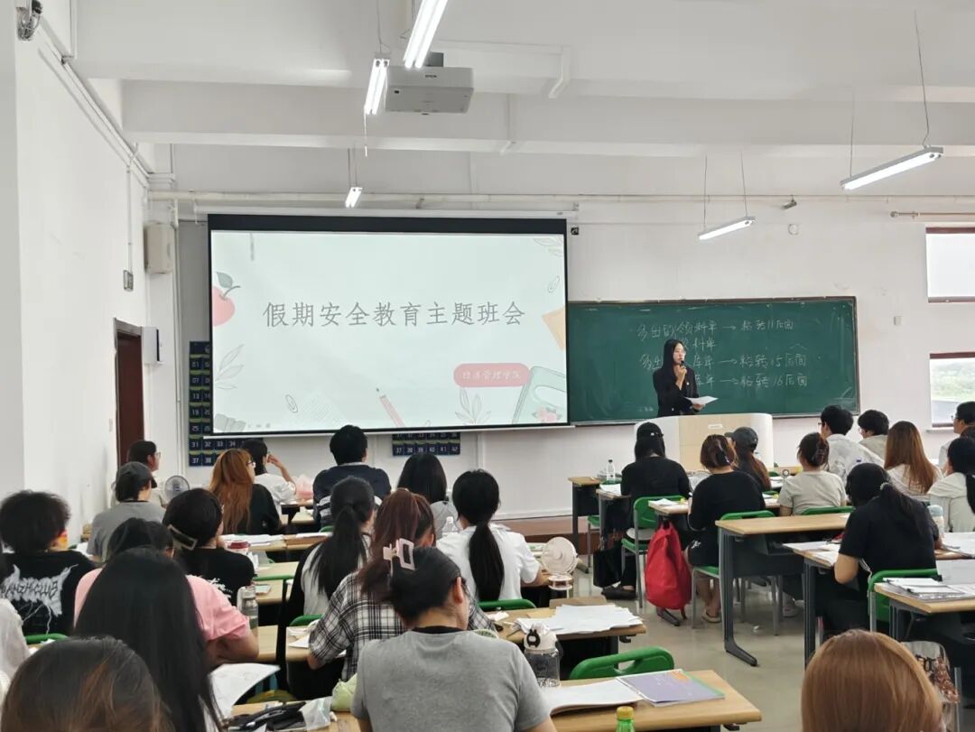 为增强学生安全意识,保障人身财产安全,在假期来临之际,经济管理学院各年级组织召开假期安全教育主题班会,各年级辅导员主持,各年级全体学生参加。