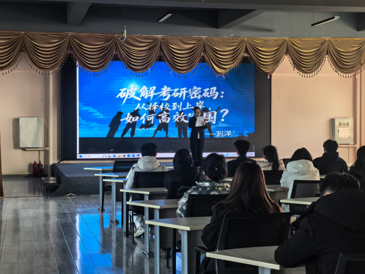 2025年11月18日,哈尔滨石油学院经济管理学院邀请拥有丰富考研教学经验的刘洋老师开展考研系列讲座,为高校学子深度解析考研认知、流程、择校及备考等关键问题,助力大家从择校到上岸高效突围。