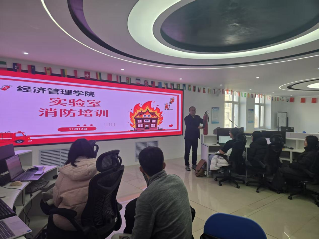 为进一步加强实验室安全管理,切实强化师生消防安全意识与应急处置能力,经济管理学院于11月13日在第二实验楼五楼跨境电商运营实验室组织开展消防安全知识培训及应急演练,实验中心人员及31名师生代表共同参与本次演练。