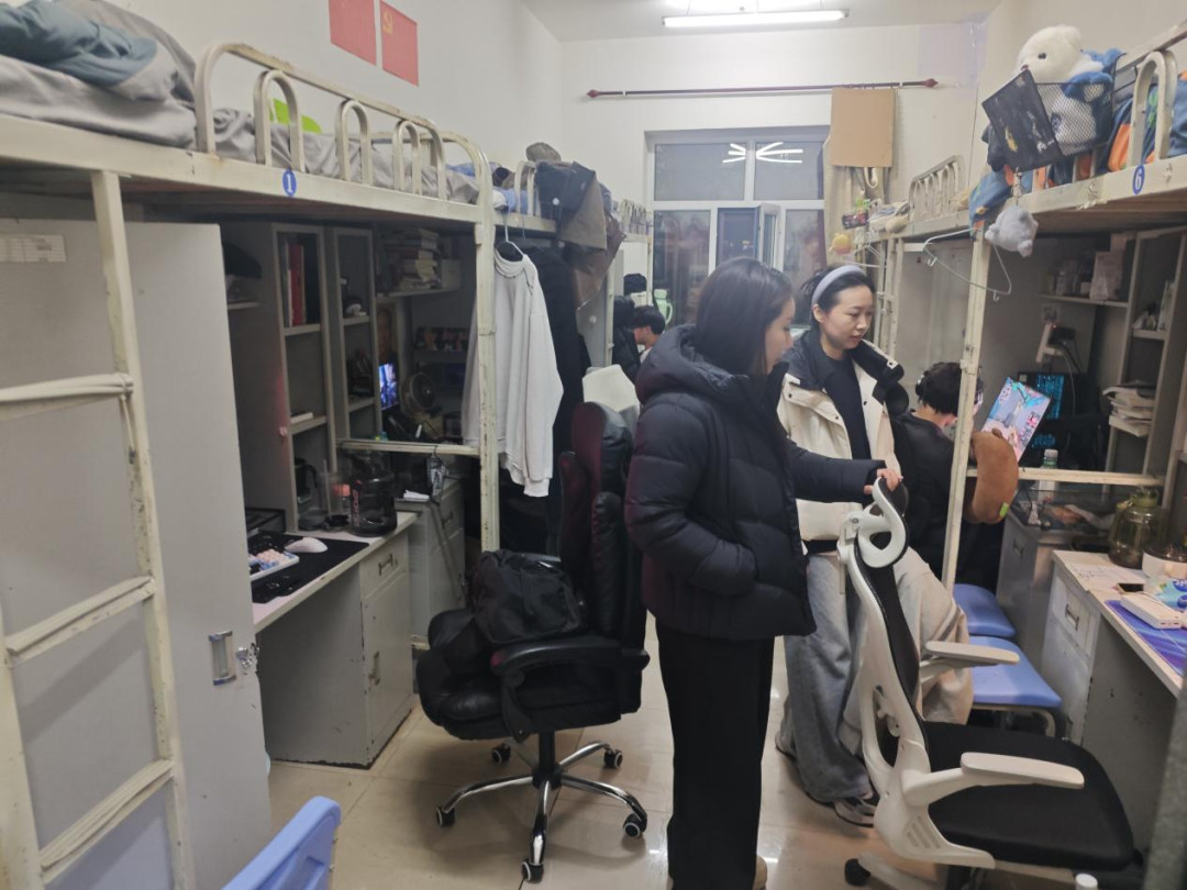 针对查寝中发现的部分宿舍物品摆放杂乱、个别学生作息不规律等问题,当场督促整改,耐心讲解安全规范与住宿管理规定;对学生提出的宿舍设施维修、生活服务保障等诉求,详细记录并承诺及时协调解决。辅导员们还与学生亲切交流,了解其学习生活状态,提醒大家注意个人财物安全,养成良好作息习惯,共同维护整洁安全和谐的宿舍氛围。