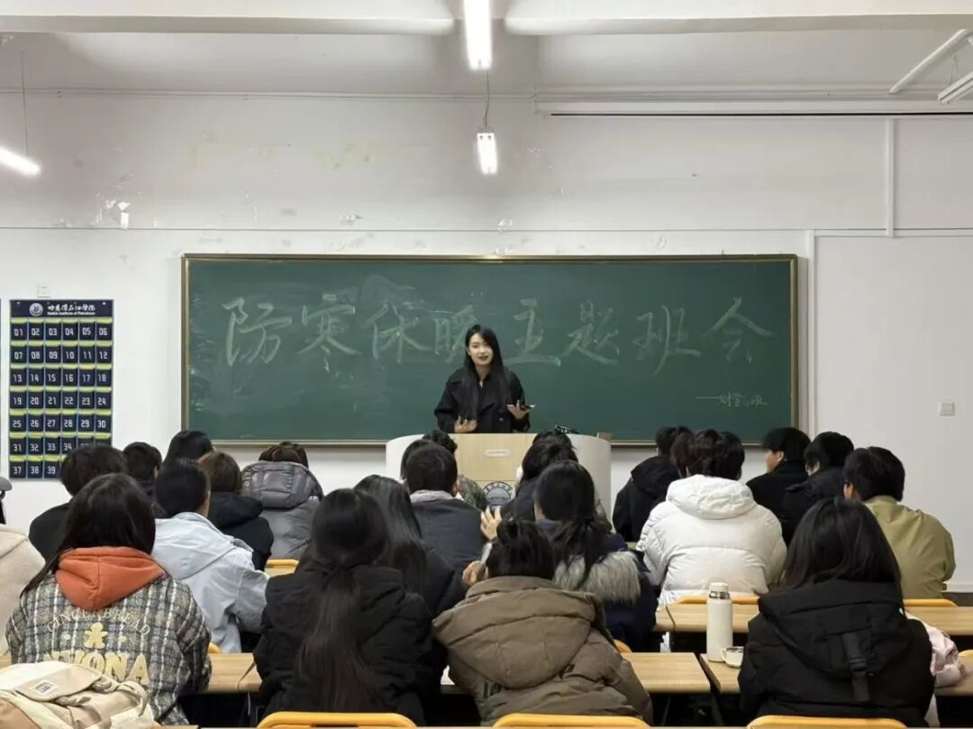 时值深秋,哈尔滨气温骤降。为关心同学们的身心健康,确保大家能以饱满的精神状态投入学习,各班于10月21日晚自习时间特别组织了“防寒保暖”主题班会。班会内容贴近生活,实用性强,不仅提醒同学们注意天气变化、及时增添衣物,还普及了冬季常见疾病的预防知识和安全用电的注意事项。一句句温暖的叮嘱,体现了班级大家庭对每一位成员的关爱,营造了团结互助、和谐友爱的良好氛围。